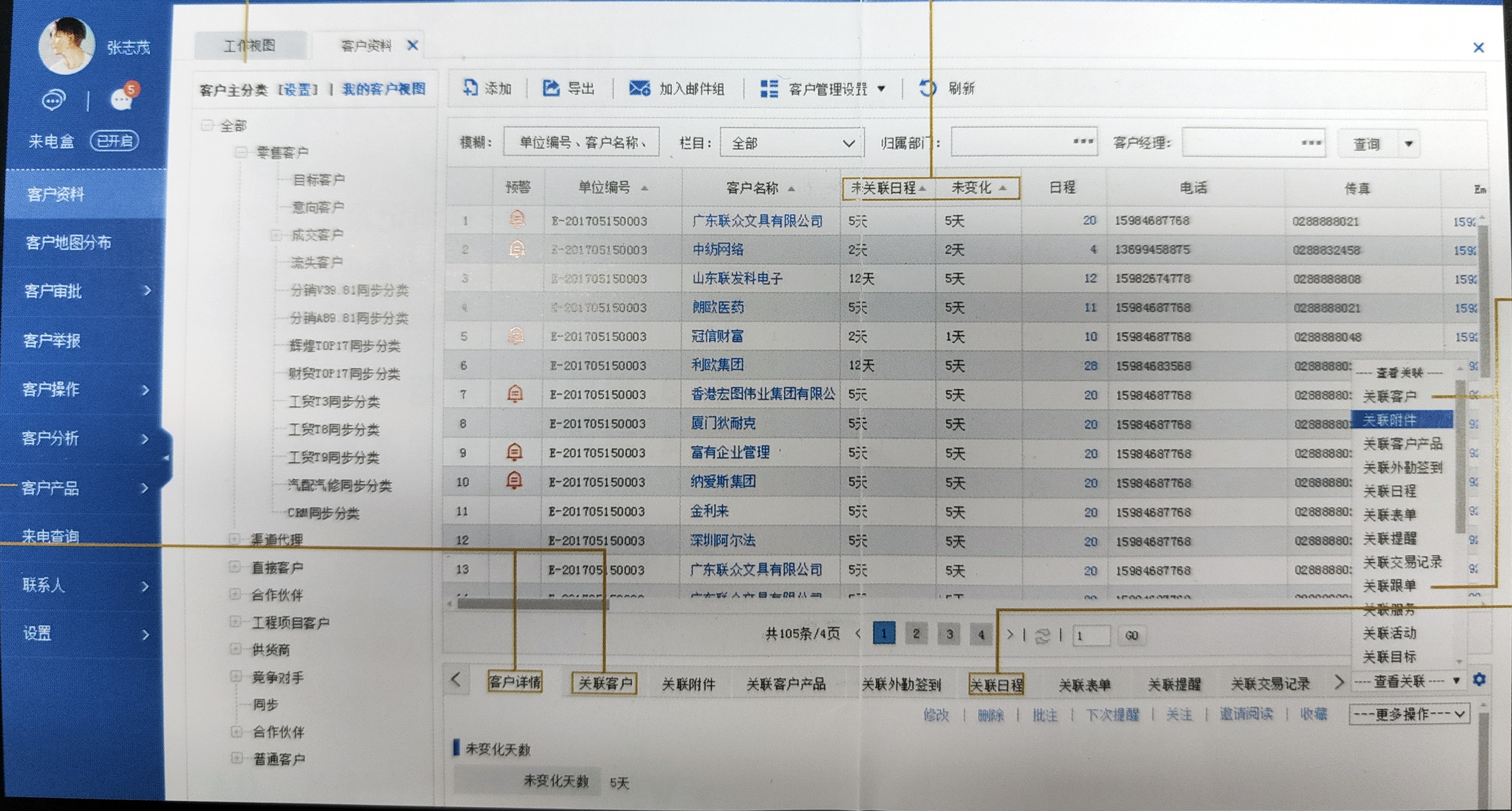销售每天要拓展新客户还要维护老客户,精力是在有限,有时候会忘记某个客户有多久没联系,还要花时间去查看聊天记录,费时费力,工作效率低。管家婆CRM客户管理系统可以详细记录客户录入时间,可以通过关联日程快速了解已联系客户、未联系客户。让客户动起来;大客户、重点客户、客户满意度、二次介绍几率、客户来源等等一目了然;还可以设置自动预警时间,有效控制客户的联系频率,避免客户流失