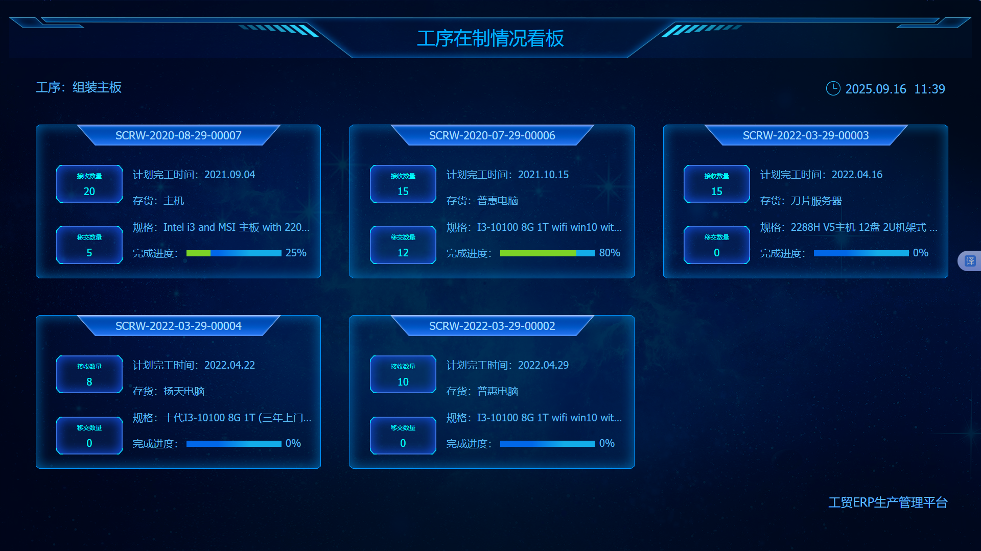 2.工序在制情况看板统计当前各个工序在制数量,方便监管调配各工位的工作饱和程度;