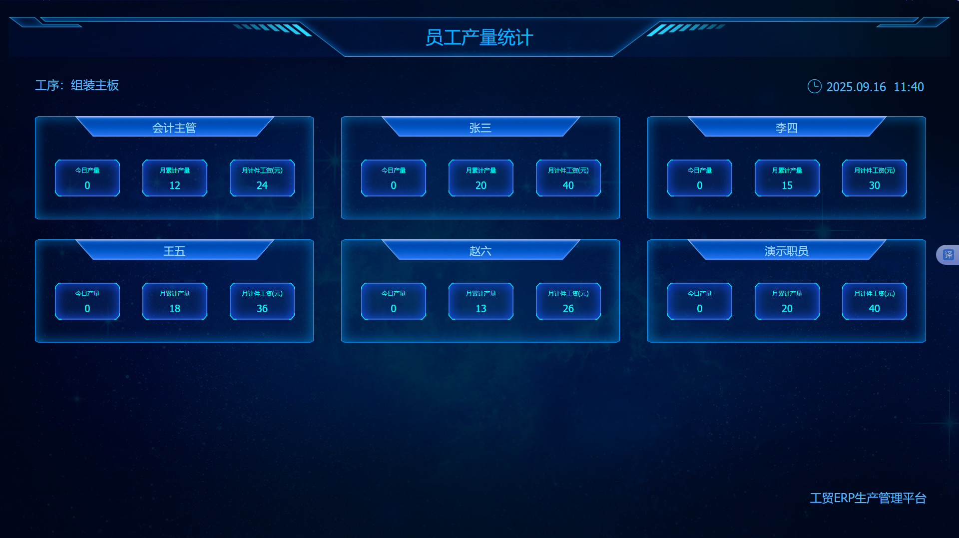 3. 员工产量统计看板统计各工作组员工的计件数量,激励员工;
