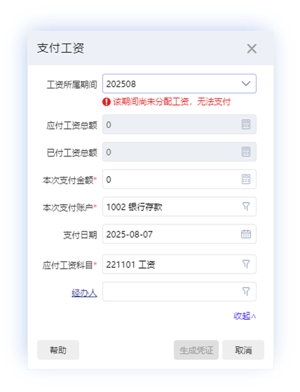 l 允许分配未结账期间的工资费用(但需按月依次操作)