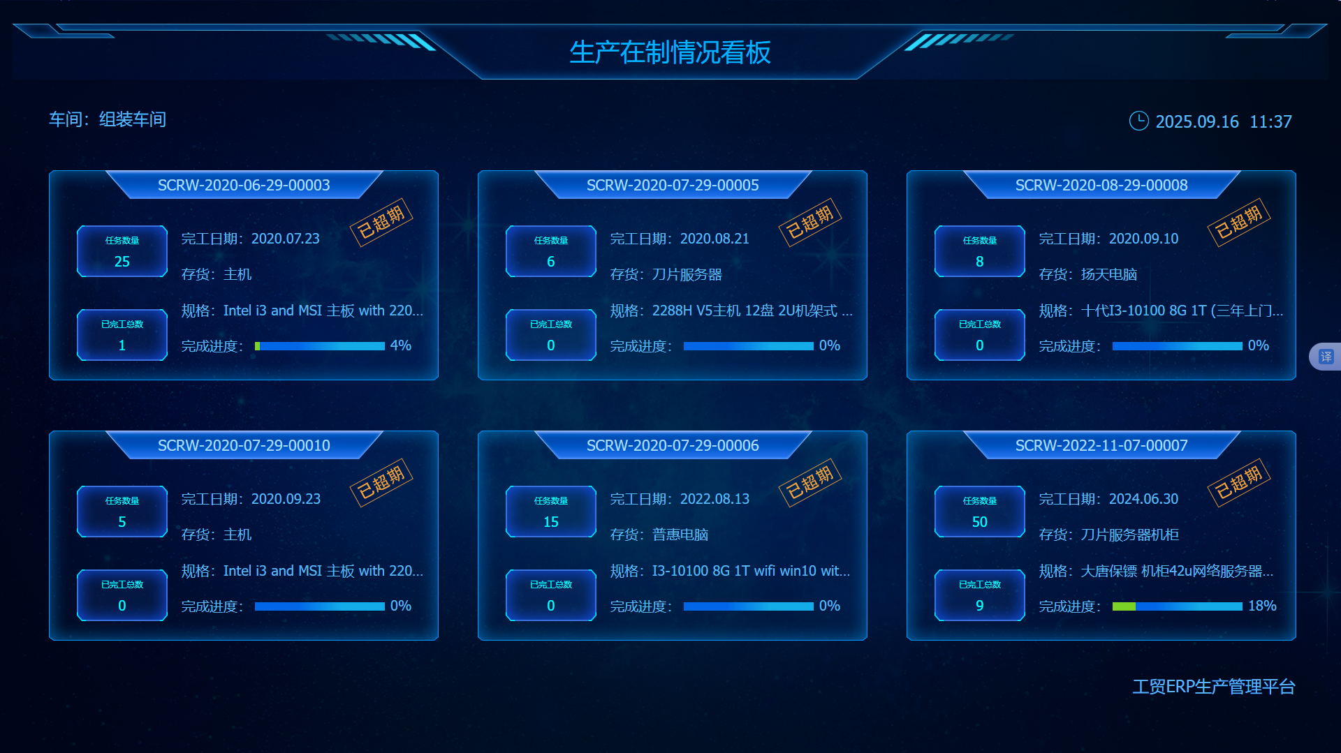 1. 生产在制情况看板查看车间目前在制的任务以及责任人和具体执行情况;